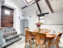 5-kamers cottage op 2 verdiepingen. Doelmatig en comfortabel ingericht: woon-/eetkamer met TV (Flatscreen TV), CD-speler, DVD en houtkachel. 1 kamer met 1 2-pers bed en douche/WC. Open keuken (4-pits kookplaat, oven, afwasmachine, magnetron, diepvriezer). Bovenverdieping: 1 kamer met 1 2-pers bed. 1 kamer met 2 bedden. 1 kamer met 1 bed en 1 uitschuifbaar bed. Bad/WC. Elektrische verwarming, houtverwarming. Kleine tuin. Terrasmeubelen. Ter beschikking: wasmachine. Internet (Internet (WiFi), gratis). Let op: rookvrij huis. Maximaal 1 huisdier/hond toegestaan.- Kenmerken van de accommodatie