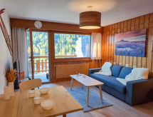 Mooi flatgebouw "Parc", omgeven door bomen. In het centrum van la station, 30 m van de bosrand, 100 m van het meer, aan een doodlopende weg. In het huis: lift, berging voor ski's, centrale verwarming. Winkel 200 m, restaurant 100 m, bakkerij 350 m, openluchtzwembad 1 km. Tennis 300 m, kabelbaan 850 m, skischool 300 m, kinderoppasdienst 350 m, ijsbaan 800 m, kinderspeelplaats 600 m, Vismogelijkheden 300 m.Interior