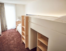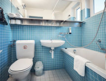 "Privates Superior Haus", huis 5-kamers 100 m2 op 2 verdiepingen, op het zuidwesten gelegen. Gedeeltelijk gerenoveerd, smaakvol ingericht: woonkamer met Kabel-TV en radio. Uitgang naar het terras. Eetkamer met eettafel. Keuken (oven, afwasmachine, 4 keramische glas kookplaten, elektrische koffiemachine). Aparte WC. Bovenverdieping: 1 2-pers. kamer met Kabel-TV. Uitgang naar het balkon. 1 kamer met 2 bedden en wastafel. Uitgang naar het balkon. 1 kamer met 3 bedden en wastafel. Uitgang naar het balkon. Bad/WC, dubbele wastafels. Olie-verwarming. Balkon, terras. Terrasmeubelen, balkonmeubilair. Ter beschikking: kinderstoel, kinderbed. Internet (Internet (WiFi), gratis). Garage. Maximaal 1 huisdier/hond toegestaan.- Uitrusting