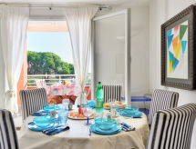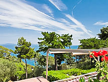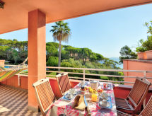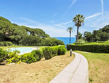 Appartement 4-kamers 90 m2, op de begane grond. Smaakvol ingericht: groot woon-/eetkamer met panoramavenster met TV. Uitgang naar het terras. 1 2-pers. kamer met 1 bed en 1 2-pers bed. 1 kamer met 1 2-pers bed. 1 kleine kamer met 1 bed (130 cm). Kleine keuken (oven, afwasmachine, 4 inductiekookplaten, magnetron). 2 douche/bidet/WC's. Terras. Uitzicht op zee. Ter beschikking: wasmachine. Parkeerplaats. Geen verplichte extra kosten ter plaatse te betalen.- Uitrusting