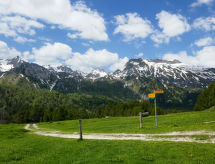 "Rustico Edel", 1-kamer cottage. Afgeschuinde daken, eenvoudig en doelmatig ingericht: open woon-/slaapkamer met 1 divanbed (160 cm, lengte 200 cm), eettafel, radio en houtkachel. Kookhoek (Gasfornuis). Douche/WC. Houtverwarming. Bovenverdieping: (ladder) vide met 2 bedden (80 cm, lengte 200 cm). Terrasmeubelen. Mooi panoramazicht op de bergen, het dal en het landschap. Ter beschikking: kinderstoel, kinderbed tot 2 jaar (extra). Let op: rookvrij huis. 1 huisdier/hond toegestaan. Brandblusser. NL-00002214- Uitrusting