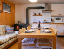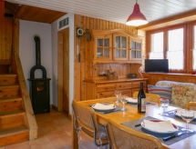 "Rustico Odette", huis 3-kamers 41 m2. Gedeeltelijk afgeschuinde daken, eenvoudig en rustiek ingericht: woonkeuken (Gasfornuis, 4 kookpitten (vlammen)) met eettafel, Sat-TV, radio, verwarming en houtkachel. Bovenverdieping: 1 kamer met 1 2-pers bed (1 x 160 cm, lengte 200 cm). Uitgang naar het balkon. 1 kleine kamer met 2 bedden (90 cm, lengte 190 cm). Douche/WC. Houtverwarming. Solarstroom. Klein balkon, kleine zithoek in de tuin. Zitgelegenheid. Mooi uitzicht op de bergen. Ter beschikking: kinderstoel, kinderbed tot 2 jaar (extra). Let op: rookvrij huis. 1 huisdier/hond toegestaan. NL-00001923- Uitrusting
