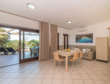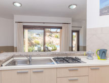 Gravina Resort: Eenvoudige, comfortabele villa "Sette", vrijstaand. Rustige, zonnige, verhoogde ligging, 2 km van zee. Voor alleengebruik: openluchtzwembad (70 m2, 130 cm diepte, seizoensgebonden beschikbaarheid: 31.Mrt. - 27.Okt.). Buitendouche. In het complex: receptie, internetaansluiting, Internet (WiFi). Parkeerplaats (voor 2 auto's) bij het huis. Winkel 1 km, levensmiddelenwinkel 1 km, supermarkt 1 km, restaurant 1 km, café 1 km, zandstrand 2.5 km. Let op: auto noodzakelijk. Dieren in de buurt.Interior