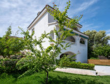 "Splash", huis 4-kamers 122 m2. Comfortabel en mooi ingericht: woon-/eetkamer met eettafel en Digitale TV. Uitgang naar het balkon. 1 kamer met 1 2-pers bed (135 cm, lengte 190 cm). Keuken (4-pits kookplaat, oven, magnetron, elektrische koffiemachine) met eettafel. Uitgang naar het balkon. Bad/bidet/WC. Geen stookmogelijkheid. Bovenverdieping: 1 kamer met 1 2-pers bed (135 cm, lengte 190 cm). 1 kamer met 1 2-pers bed (135 cm, lengte 190 cm). Uitgang naar het balkon. 1 kamer met 1 bed (90 cm, lengte 190 cm), 1 2-pers bed (135 cm, lengte 190 cm). Doorgangskamer met air-conditioning. Bad/bidet/WC. Zithoek in de tuin. Terrasmeubelen, balkonmeubilair, barbecue. Beperkt uitzicht in de verte op zee. Ter beschikking: wasmachine, strijkijzer, haardroger. Internet (Internet (WiFi), gratis). Parkeerplaats (overdekt, 1 Auto), garage op het terrein (1 Auto). Geschikt voor families. R000000001- Uitrusting
