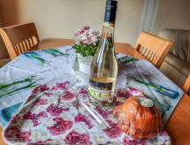 Huis 2-kamers 75 m2 op 2 verdiepingen. Gedeeltelijk afgeschuinde daken, gezellig ingericht: woon-/slaapkamer met 1 bed, 1 2-pers divanbed, eettafel, Sat-TV, stereo-installatie en DVD. Uitgang naar de tuin, naar het terras. Kleine keuken (oven, afwasmachine, 4 keramische glas kookplaten, waterkoker, magnetron, elektrische koffiemachine). Douche/bidet/WC. Verwarming. Bovenverdieping: (wenteltrap), 1 kamer met afgeschuinde daken, zonder kast met 1 bed en 1 2-pers bed. Natuurstenen vloeren. Barbecue (verrijdbaar). Ter beschikking: kinderstoel. Internet (Internet (WiFi)). Let op: niet rokers woning. 2 huisdieren/honden toegestaan.- Uitrusting