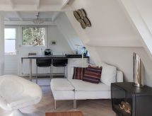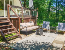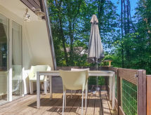 "Frui Cotidie", huis 3-kamers 75 m2 op 2 verdiepingen. Afgeschuinde daken, comfortabel ingericht: woon-/eetkamer met eettafel, Flatscreen TV, CD-speler en DVD. Uitgang naar het balkon, naar het terras. Open keuken (4-pits kookplaat, afwasmachine, magnetron). Douche/WC. Verwarming. Bovenverdieping: (steile trap), 1 2-pers. kamer met afgeschuinde daken met 2 bedden (90 cm, lengte 200 cm). 1 2-pers. kamer met afgeschuinde daken met 1 2-pers bed (1 x 160 cm, lengte 200 cm). Balkon terras. Terrasmeubelen, balkonmeubilair. Uitzicht op het bos. Ter beschikking: kinderstoel, kinderbed, haardroger. Internet (Internet (WiFi), gratis). Blu-Ray speler, iPod docking station. Parkeerplaats (2 Auto's) bij het huis. Let op: rookvrij huis. Rookmelders. De woning beschikt over een gashaard.- Uitrusting