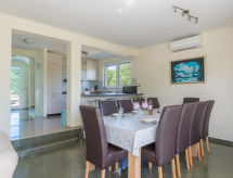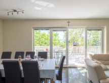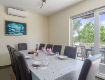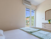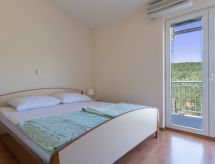 Huis 5-kamers 180 m2 op 2 verdiepingen. Woon-/eetkamer met Sat-TV en air-conditioning. Uitgang naar het terras. 1 kamer met 1 2-pers bed (160 cm, lengte 200 cm). Open keuken (4-pits kookplaat, oven, afwasmachine, diepvriezer). Douche/WC. Bovenverdieping: 1 kamer met 1 2-pers bed (180 cm, lengte 200 cm). Uitgang naar het balkon. 1 kamer met 1 2-pers bed (180 cm, lengte 200 cm). Uitgang naar het balkon. 1 kinderkamer met 2 x 2 stapelbedden (90 cm, lengte 200 cm). Uitgang naar het balkon. Bad/bidet/WC, dubbele wastafels. 2 balkons, terras 30 m2 gedeeltelijk overdekt. Terrasmeubelen. Uitzicht op zee. Ter beschikking: Internet (Internet (WiFi), gratis).- Activiteiten in de buurt