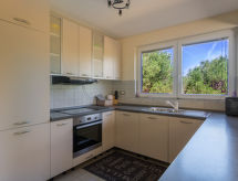 Eengezinswoning "Tea". Buiten de plaats, rustige, zonnige ligging, 250 m van zee, 250 m van het strand, te midden van groen. Voor alleengebruik: terrein 700 m2, tuin. Barbecue. In het huis: internetaansluiting, wasmachine. Parkeerplaats bij het huis op het terrein. Winkel 500 m, restaurant 700 m, zandstrand, kiezelstrand 250 m.Interior