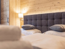 "Zirbenlodge mit Sauna", halfvrijstaand huis 5-kamers 125 m2. Licht, comfortabel en smaakvol ingericht: woon-/eetkamer met eethoek en Sat-TV (Flatscreen TV). 3 2-pers. kamers. 1 kamer met 2 x 2 stapelbedden. Open keuken (oven, afwasmachine, 4 keramische glas kookplaten, diepvriezer, elektrische koffiemachine). 2 douche/WC's, aparte WC. Balkon of terras. Terrasmeubelen, balkonmeubilair. Zeer mooi uitzicht op de bergen en het landschap. Ter beschikking: sauna. Internet (Internet (WiFi), gratis). Let op: niet rokers woning. Bij het huurobject gaat het om een typenhuis / een typenappartement.- Uitrusting