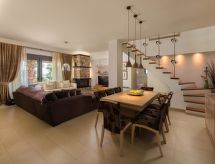 Mooi, comfortabele villa "Verde", van 2 verdiepingen, vrijstaand, omgeven door velden. In de wijk Kallithea, 8 km van het centrum van Rhodes, rustige, zonnige ligging, 1.7 km van zee, 1.7 km van het strand. Voor alleengebruik: mooie, verzorgde tuin met bloemen en bomen, ligweide, openluchtzwembad hoekig (8 x 4 m, 150 cm diepte, seizoensgebonden beschikbaarheid: 01.Apr. - 30.Nov.). Buitendouche, barbecue, parkeerplaats bij het huis. Levensmiddelenwinkel 1.5 km, supermarkt 1.5 km, restaurant 1.5 km, bar 1.5 km, bakkerij 1.5 km, café 1.5 km, zandstrand "Kallithea" 1.7 km. Golfterrein (18 holes) 15.3 km, manege 5.8 km. Attracties in de buurt: Valley of the Butterflies 28 km, Lindos Acropolis 46.5 km, Asklipio Castle 59.2 km, Palace of the Grand Master of Knights 7.4 km, Medieval City of Rhodes 7 km, Waterpark Rhodes 7.6 km. Let op: auto noodzakelijk. Geschikt voor families, baby uitrusting op aanvraag (incl.). Groepen jongeren uitsluitend op aanvraag.Interior