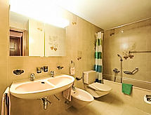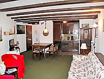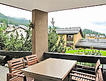 "56-1", 3 rom leilighet 77 m2, på bakkeplan. Praktiskt og koseligt møbler: åpen stue/spisestue med, 1 sovesoffa (140 cm), spisebord og TV (flatskjerms TV), radio og stereoanlegg. Utgang til terrassen. 1 dobblet rom med 2 senger (90 cm lengde 200 cm). 1 rom med 1 seng og 1 x 2 køysenger. Åpent kjøkken (4 kokeplater, ovn, oppvaskmaskin, elektrisk kaffemaskin). Bad/WC, dusj/WC. Stor terrasse, beliggenhet mot sør. Terrassemøbler. Vakker utsikt av fjellene og landskapet. Fasiliteter: Internett (trådløs LAN [WLAN], gratis). Vennligst merk: røykfri bolig. Dessverre er det ikke lov å røyke i denne innkvarteringen. Det er en restaurant på torget. Lekeplassen, som er egnet for barn, er tilgjengelig. En overbygd parkering er tilgjengelig. Finn ut om det eksisterende TV-apparatet. Om lokale nyheter eller internasjonale nyheter, med fjernsynet er du alltid godt informert. Et trådløst lokalnettverk (WLAN) er tilgjengelig. En tørketrommel er tilgjengelig.- Kjennetegn ved boligen