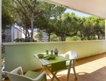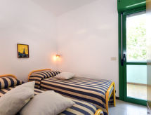 2 rom leilighet 35 m2. Praktiskt møbler: stue/soverom med, 1 sovesoffa, 1 uttrekkbar seng, spisebord og satelit-TV. 1 rom med 1 seng og 1 dobbeltseng. Kjøkkenkrok (4 gassbrennere, mikrobølgeovn, frys, elektrisk kaffemaskin). Dusj/bidé/WC. Airconditioning, varmluftsoppvarming. Balkong. Balkongmøbler. Fasiliteter: safe, høy barnestol barneseng for barn opp til 2 år (ekstra). Parkeringsplass (overdekt, 1 Bil). Max 1 lite kjæledyr / liten hund tillatt. Er en vanlig dusjritual fast forankret i den daglige rutinen? Vi kan gjøre det fordi en dusj er tilgjengelig. Objekt med heis. Huset er også utstyrt med en overbygd parkeringsplass. Et barnebasseng er tilgjengelig.- Kjennetegn ved boligen