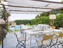 4 rom hus 90 m2 på 2 etasjer, på bakkeplan. Komfortabelt og smakfullt møbler: stor stue/spisestue med, TV. Utgang til sitteplass i hagen. 1 dobblet rom. 1 litet rom med 2 senger. Utgang til hagen. Kjøkkenkrok (4 kokeplater, ovn, oppvaskmaskin, frys). Dusj/bidé/WC. øverste etasje: 1 dobblet rom med skråtak med, air-conditioning. Dusj/bidé/WC. Sitteplass i hagen. Terrassemøbler. Fasiliteter: vaskemaskin, strykejern, myggnett, barneseng, hårføner. Internett (trådløs LAN [WLAN], gratis). Velegnet for familier. Kjæledyr / hund tillatt 1 kjæledyr / hund tillatt. Spontane ideer oppstår ofte under dusjen. Kanskje hennes nye roman eller sang vil bli opprettet i løpet av disse ferien! Uansett, en dusj er tilgjengelig. To-leggede og firbente venner på ferie er mulig her, fordi alle er velkommen her. Husdyr er tillatt. Med inngjerdet tomt. Klimaanlegget sørger for god romtemperatur. Fordi den følelsesvennlige faktoren spiller en viktig rolle og er viktig for oss. En barneseng er tilgjengelig. Det har et privat basseng.- fasiliteter