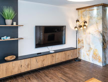 Treffen/Ossiachersee: Moderne, komfortabel leilighetshus "Alpe Maritima by Alps Resorts", med 4 etasjer. 2 km fra sentrum av Annenheim, 300 m fra innsjø 150 m fra skiområdet. I hbrukt: sentralvarme. Parkering ved hbrukt. Ladestasjon for elbil. Supermarked 2 km, restaurant 2 km, sjøen Ossiachersee 300 m. Skisportenanlegg 200 m. Attraksjoner i nærheten: Villach 9 km, Tarvis (Italien) 40 km, Bled Slovenien 50 km. Velkjente skiområder: Gerlitzen 200 m. Velkjente innsjøer: Wörthersee 28 km. Turstier Biosphärenpark Nockberge, Karnische Alpen. Bbildet er et eksempel. Feriehuset kan variere i stue, planløsning, utstyr og møbler. Hvis fjellet ringer igjen. Treffen er utgangspunktet for en rekke fantastiske turstier i fjellene. Fra din innkvartering, kan du lande i skianlegget på kort tid. Med utmerket preparerte løp, utfordrende mogulpister eller varierte carvingruter er det noe for enhver smak.Interior
