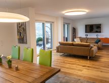 Treffen/Ossiachersee: Moderne, komfortabel leilighetshus "Alpe Maritima by Alps Resorts", med 4 etasjer. 2 km fra sentrum av Annenheim, 300 m fra innsjø 150 m fra skiområdet. I hbrukt: sentralvarme. Parkering ved hbrukt. Ladestasjon for elbil. Supermarked 2 km, restaurant 2 km, sjøen Ossiachersee 300 m. Skisportenanlegg 200 m. Attraksjoner i nærheten: Villach 9 km, Tarvis (Italien) 40 km, Bled Slovenien 50 km. Velkjente skiområder: Gerlitzen 200 m. Velkjente innsjøer: Wörthersee 28 km. Turstier Biosphärenpark Nockberge, Karnische Alpen. Bbildet er et eksempel. Feriehuset kan variere i stue, planløsning, utstyr og møbler. Solen skinner og fjellet ringer. For fotturer et egnet sted.Interior