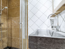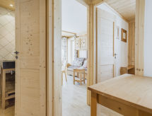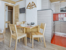 2 rom leilighet 32 m2 i 2nd etasje. Stue/spisestue med, 1 uttrekkbar seng (2 pers. 2 x 80 cm, lengde 190 cm), TV. 1 rom med, 1 dobbeltseng (140 cm). Inngang med, 1 x 2 køysenger (80 cm, lengde 190 cm). Åpent kjøkken (ovn, oppvaskmaskin, 3 keramiske kokeplater, mikrobølgeovn). Dusj/WC. Stor balkong 10 m2, beliggenhet mot sør. Meget vakker panoramautsikt av fjellene og skibakkene. Fasiliteter: Internett (trådløs LAN [WLAN], gratis). Vennligst merk: røykfri bolig. Nyt dusjet og lukter du kan slappe av på ferien programmet, fordi en dusj er tilgjengelig.- fasiliteter