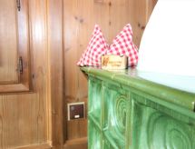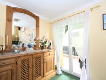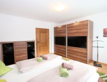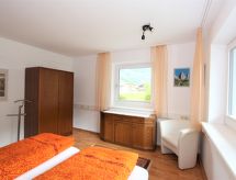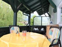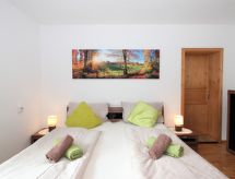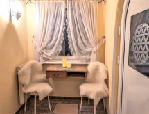 3 rom leilighet 86 m2, i forhøyet bunnetasje. Renovert i 2018, koseligt møbler: inngang. Stor stue/soverom med, 1 dobbel sovesoffa og satelit-TV (flatskjerms TV). 1 dobblet rom. 1 dobblet rom med, bad/WC. Kjøkken/stue (ovn, oppvaskmaskin, 4 keramiske kokeplater, grill) med, spisehjørne og satelit-TV (flatskjerms TV), kakkelovn. Stor terrasse 20 m2, dekt. Terrassemøbler, lager. Vakker utsikt av fjellene og landskapet. Fasiliteter: vaskemaskin. Internett (trådløs LAN [WLAN]). Vennligst merk: røykfri bolig. Den vakre, store terrassen er tilgjengelig for engangsbruk, det er en halv etasje høyere enn leiligheten og er tilgjengelig via trapphuset. Et ekstra toalett er tilgjengelig (neste dør, samme etasje). Den flislagte komfyren er ikke oppvarmet med tre, men elektrisk. Advarsel: Ingen ladeanlegg for elbiler. Henting av nøkler 7 km fra leiligheten. Et badekar er tilgjengelig.- fasiliteter