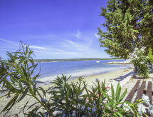2 rom leilighet 40 m2, i toppetasjen, beliggenhet mot sør-vest. Stue/spisestue 16 m2, med skråtak, Lav dørhøyde 100 cm 210 cm med, 1 dobbel sovesoffa (120 cm, lengde 190 cm), satelit-TV (flatskjerms TV), air-conditioning. Utgang til terrassen. 1 rom med skråtak Lav dørhøyde 100 cm 210 cm med, 1 dobbeltseng (140 cm, lengde 200 cm). Med sluttende tak, åpent kjøkken (4 kokeplater, ovn, elektrisk kaffemaskin), takhøyde 100- 210 cm. Dusj/WC. Terrasse 10 m2. Terrassemøbler. Utsikt av havet. Fasiliteter: Internett (trådløs LAN [WLAN], gratis). Maks. personer: 2 voksne, 2 barn opp til 12 år. Dessuten er de bortskjemt med en klar utsikt over havet. Det er en parkeringsplass. Finn ut om det eksisterende TV-apparatet. Om lokale nyheter eller internasjonale nyheter, med fjernsynet er du alltid godt informert.- fasiliteter