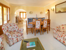 "Amarilla", 4 rom hus 130 m2 på 2 etasjer. Romlig og lys, komfortabelt og smakfullt møbler: stue 20 m2 med, satelit-TV, digital TV og internasjonale TVkanaler. Utgang til terrassen. 1 rom med, 1 dobbeltseng og bad/bidèt/WC. 1 rom med 2 senger. Kjøkken/stue (ovn, oppvaskmaskin, mikrobølgeovn, frys). Dusj/WC. Airconditioning. I underetasje: 1 dobblet rom med, bad/bidèt/WC. Kjøkkenkrok (2 kokeplater). Grill (flyttbar). God utsikt av havet. Fasiliteter: vaskemaskin, høy barnestol barneseng for barn opp til 2 år. Internett (trådløs LAN [WLAN], gratis). Parkeringsplass ved hbrukt. Velegnet for familier. Max kjæledyr / hund tillatt 1 kjæledyr / hund tillatt. AT-440942-A Det er et privat basseng.- Kjennetegn ved boligen