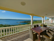 4 rom hus 90 m2. Stue/spisestue 38 m2 med, satelit-TV og air-conditioning. Utgang til terrassen. 2 rom, hvert rom med, 1 dobbeltseng (160 cm, lengde 200 cm). 1 rom med, 1 dobbeltseng (140 cm, lengde 200 cm). Åpent kjøkken (ovn, oppvaskmaskin, 4 gassbrennere, mikrobølgeovn, frys, elektrisk kaffemaskin). Dusj/bidé/WC. Terrasse 32 m2, dekt. Terrassemøbler, liggestoler. Utsikt av havet. Fasiliteter: barneseng, hårføner. Internett (trådløs LAN [WLAN], gratis). Om morgenen hopper jumping raskt under den tilgjengelige dusjen kropp, sinn og sjel. Utsikt over havet og beliggenheten er nydelig. Selv om det forblir så varmt om natten, er det fint, du kan skru på klimaanlegget og sove i et hyggelig, temperert inneklima. Den har en baby seng. En oppvaskmaskin er tilgjengelig. Takket være vaskemaskinen finner du mindre klær å bære.- fasiliteter