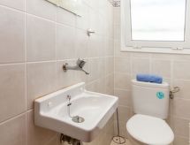 "Anfora 1", 3 rom leilighet 50 m2, bunnetasje. Praktiskt møbler: stue/spisestue med, satelit-TV og air-conditioning. Utgang til terrassen. 1 rom med 2 senger (90 cm lengde 190 cm), vaskeservant. 1 rom med 1 seng (90 cm lengde 190 cm), 1 x 2 køysenger (90 cm, lengde 190 cm). Kjøkken (4 keramiske kokeplater, brødrister, vannkoker, mikrobølgeovn, frys, elektrisk kaffemaskin). Dusj, sep. WC. Vannkoker (50 liter). Terrasse delvis dekt. Terrassemøbler, grill. Fasiliteter: vaskemaskin, safe, strykejern, høy barnestol barneseng for barn opp til 3 år, hårføner. Internett (trådløs LAN [WLAN], gratis). Parkeringsplass plass nr 2'29 widthx 2height (overdekt). Vennligst merk: bare TV FR, DE. HUTG002981 Dusj er forfriskende og en dusj er til stede. Den undertrykkende varmen kan legge stor belastning på kropp og sinn. Derfor er lokalene utstyrt med air condition. Huset er også utstyrt med en overbygd parkeringsplass.- fasiliteter