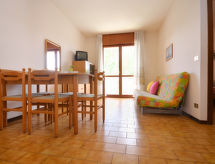 Liten leilighetshus "Angolo", med 3 etasjer. 6 leiligheter i residensen. I området Spiaggia 250 m fra sentrum av Bibione-Spiaggia, 13 km fra sentrum av Lignano, 100 km fra sentrum av Venezia, 550 m fra sjøen. Fellesbruk: tomt (inngjerdet). I hbrukt: sykkelutleie. Butikk 250 m, supermarked 350 m, restaurant 250 m, togstasjon "Latisana (Milano-Venezia-Triest)" 21 km, sandstrand 550 m. Golfbane(18 hull) 8.5 km. Eieren godtar ingen grupper. Høydepunktet for hele familien på hver ferie er et besøk til fornøyelsesparken med sine mange attraksjoner.Interior