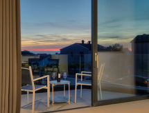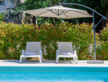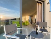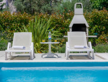 5 rom villa 160 m2 på 2 etasjer. Stue/spisestue med, satelit-TV (flatskjerms TV), air-conditioning. 2 rom, hvert rom med, 1 dobbeltseng (2 x 90 cm, lengde 200 cm), satelit-TV (flatskjerms TV), air-conditioning. Utgang til badebassenget. Åpent kjøkken (ovn, oppvaskmaskin, 4 keramiske kokeplater, mikrobølgeovn, frys, elektrisk kaffemaskin). Dusj/WC, sep. WC. øverste etasje: åpen gjennomgangsrom med, 2 sovesoffaer (90 cm, lengde 200 cm), satelit-TV (flatskjerms TV), air-conditioning. Utgang til terrassen. 1 rom med, 1 dobbeltseng (2 x 90 cm, lengde 200 cm), satelit-TV (flatskjerms TV), air-conditioning. Utgang til terrassen. Dusj/WC. Varmluftsoppvarming. Terrasse 8 m2, terrasse 6 m2. Terrassemøbler, liggestoler. Delvis utsikt av havet. Fasiliteter: safe, barneseng, hårføner. Internett (trådløs LAN [WLAN], gratis). Er en vanlig dusjritual fast forankret i den daglige rutinen? Vi kan gjøre det fordi en dusj er tilgjengelig. Med inngjerdet tomt. Hagen vår inviterer deg til å nøle. Det er en oppvaskmaskin. Et privat basseng er tilgjengelig.- fasiliteter