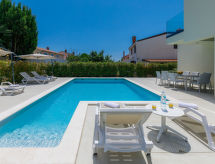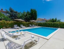 Štinjan 5 km fra Pula: Villa "Anna", med 2 etasjer. 3 km fra sentrum av Fažana, i en solrikt posisjon, 1 km fra sjøen, 1 km fra stranden. Privat: tomt 750 m2 (inngjerdet), hage med plen, svømmebasseng kantete (8 x 4 m, dybde 140 cm, Sesongåpent: 01.Mai. - 15.Okt.) med innebygde trapper. Utendørs dusj, grill. I hbrukt: internetilkobbling, vaskemaskin. Parkering (for 3 biler) ved hbrukt på tomten. Butikk 100 m, restaurant 800 m, småstenstrand 1 km, strand ved klipper 1 km. Golfbane 5 km, seileskole 5 km, tennis 500 m, rideskole 4 km, turstier fra hbrukt 500 m, sykkelvei 550 m. Eieren godtar ikke noen ungdomsgrupper. Vennligst merk: flyplass 15 km av hbrukt. Å spille tennis i løpet av ferien er en attraktiv forandring. Derfor kan det være at en tennisbane med oss ikke mangler.Interior