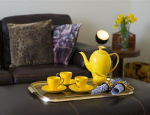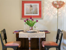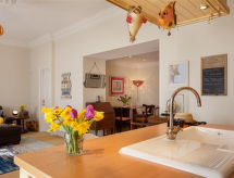 3 rom leilighet på bakkeplan. Romlig og lys, komfortabelt og smakfullt møbler: åpen stue med, TV, flatskjerms TV og DVD. 2 dobbelt rom, hvert rom med, 1 dobbeltseng og bad. Åpent kjøkken (4 kokeplater, ovn, mikrobølgeovn, frys) med spisebord. Oppvarming. Terrassemøbler. Vakker utsikt av området. Fasiliteter: vaskemaskin, tørketrommel. Internett (trådløs LAN [WLAN], gratis). Vennligst merk: røykfritt hus. Et badekar er tilgjengelig. En veranda er til stede. En vaskemaskin er tilgjengelig for bruk. En internettforbindelse er tilgjengelig. Et trådløst LAN (trådløst lokalnettverk) er tilgjengelig. Det er en mikrobølgeovn tilgjengelig.- fasiliteter