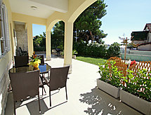 3 rom leilighet 85 m2, på bakkeplan, beliggenhet mot sør. Stue/spisestue med, 1 sovesoffa og satelit-TV (flatskjerms TV), air-conditioning. 1 rom med, 1 dobbeltseng (2 x 90 cm, lengde 200 cm). 1 rom med 2 senger (90 cm lengde 200 cm). Åpent kjøkken (2 kokeplater, stekeovn, oppvaskmaskin, 2 gassbrennere, frys). Bad/dusj/WC. Terrasse 10 m2, dekt. Terrassemøbler, liggestoler (3). Delvis utsikt av havet. Fasiliteter: vaskemaskin. Internett (trådløs LAN [WLAN], gratis). For å holde det kult om sommeren, har dette feriehuset aircondition. Passer til grill. Takket være vaskemaskinen finner du mindre klær å bære.- Aktiviteter i nærheten