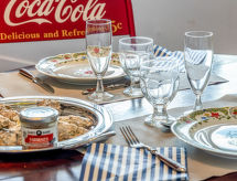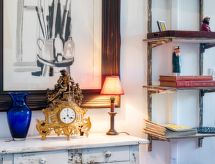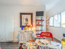 Quiberon: Flermannsbolig med 3 etasjer. I sentrum av Quiberon, 50 m fra sjøen, 50 m fra stranden. Parkering. Butikk, daglivarehandel 10 m, supermarked 500 m, kjøpesenter 10 m, restaurant, bar 50 m, bakeri 200 m, sykkelutleie 100 m, sandstrand "Grande plage de Quiberon" 50 m. Attraksjoner i nærheten: Gare maritime les iles Houat, Hoedic. 800 m, Les alignements de Carnac 26 km, Auray et le port de St Goustan 33 km, Vannes 48 km, Lorient 50 km. Venner av vandring snører vandringstøvlene og går på en utforskningstur gjennom naturen i det flate området. Ridning tilgjengelig. Her er utmerket omsorg for hest og rytter og en unforgotten rider ferie er ingenting i veien.Interior
