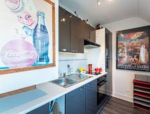 "Appartement Hoche", 1 rom etromsleilighet 25 m2 i 3rd etasje. Komfortabelt møbler: stue/spisestue med, 1 dobbel sovesoffa (1 x 140 cm, lengde 190 cm), TV (flatskjerms TV). Kjøkken (ovn, 2 keramiske kokeplater, brødrister, vannkoker, elektrisk kaffemaskin). Bad/WC. El-oppvarming. Fasiliteter: Internett (trådløs LAN [WLAN], ekstra). Parkeringsplass. Vennligst merk: røykvarsler.- fasiliteter
