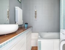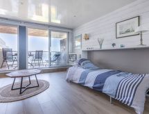 1 rom etromsleilighet 31 m2 i 4th etasje. Komfortabelt og smakfullt møbler: stue/spisestue med, 1 dobbel sovesoffa (1 x 160 cm, lengde 190 cm), 1 neddragbar klappseng (90 cm, lengde 200 cm), TV (flatskjerms TV). Utgang til terrassen. Åpent kjøkken (ovn, 2 induksjonskomfyr, brødrister, vannkoker, elektrisk kaffemaskin, Internet(Nespresso), ekstra). Bad, sep. WC. El-oppvarming. Terrasse 8 m2. Terrassemøbler, liggestoler (1). Meget vakker utsikt av havet. Fasiliteter: vaskemaskin, tørketrommel, strykejern, hårføner. Internett (trådløs LAN [WLAN], gratis). Parkeringsplass plass nr 42 (overdekt). Vennligst merk: røykfri bolig. Røykvarsler. Residence. Bad i huset. Røyking er ikke tillatt. Objekt har en heis. Overrasket med en fantastisk utsikt over havet. En overbygd parkering er tilgjengelig. Et trådløst lokalnettverk (WLAN) er tilgjengelig. En tørketrommel er tilgjengelig.- Kjennetegn ved boligen
