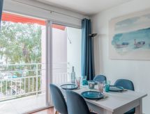 Arcachon: Residens "Arcachon Marines". I området d'Aiguillon, 500 m fra sjøen, 500 m fra stranden. I anlegget: heis. Butikk 1 km, daglivarehandel, supermarked 200 m, kjøpesenter 2 km, restaurant, bar 100 m, bakeri 130 m, café 100 m, togstasjon "Arcachon" 1.9 km, sandstrand "Aiguillon" 500 m, park "Mauresque" 2.7 km, svømmehall 50 m. Sporthavn 1 km, golfbane(18 hull) 4.8 km, sykkelvei 50 m. Attraksjoner i nærheten: Aqualand 8.5 km, ArcaJetMarine 250 m, Casino 1.7 km, Marché Municipal 1.5 km, Dune du Pyla 11.6 km, Navette Maritime pour le Cap Ferret 1.7 km. Velkjente innsjøer: Lac de la Magdeleine 9.2 km, Lac de Cazaux 17.1 km. Nøkkelleveringen skjer i Interhome i Arcachon, 2 km.Interior