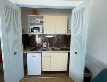 1 rom leilighet 24 m2 i 2nd etasje. Stue/spisestue med, 1 dobbel sovesoffa (130 cm, lengde 190 cm), TV (flatskjerms TV). Sovealkove med, 1 x 2 køysenger (80 cm, lengde 190 cm). Kjøkkenkrok (2 kokeplater, brødrister, vannkoker, elektrisk kaffemaskin, kombinert mikrobølgeovn). Dusj/WC. Terrasse 8 m2, beliggenhet mot vest. Terrassemøbler. Vakker utsikt av havet. Fasiliteter: Internett (trådløs LAN [WLAN], ekstra). Vennligst merk: røykvarsler. Parking space in the underground garage. Residence. Objekt har en heis. Dessuten er de bortskjemt med en klar utsikt over havet.- Kjennetegn ved boligen
