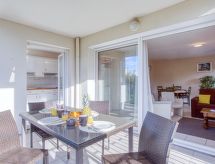 3 rom leilighet 75 m2 i 2nd etasje. Vakkert møbler: stue/spisestue med, TV (flatskjerms TV). Utgang til terrassen. 1 rom med, 1 dobbeltseng (140 cm, lengde 190 cm). 1 rom med 2 senger (80 cm lengde 190 cm). Kjøkken (4 kokeplater, oppvaskmaskin, 4 keramiske kokeplater, brødrister, vannkoker, mikrobølgeovn, frys, elektrisk kaffemaskin, kombinert mikrobølgeovn). Bad, sep. WC, dobbel servant. Gassoppvarming. Stor terrasse 14 m2, beliggenhet mot sør-vest. Terrassemøbler. Fasiliteter: vaskemaskin, strykejern, hårføner. Internett (trådløs LAN [WLAN], gratis). Parkeringsplass plass nr 23 (overdekt). Vennligst merk: røykfri bolig. Røykvarsler. 641220018574C Du kan ta heisen til gulvet i leiligheten. Det er en overbygd parkeringsplass. Hvis været ikke spiller, er det også en TV.- Kjennetegn ved boligen