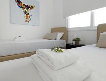 4-rom hus, frakoblet, for 6 mennesker, 120 m2, moderne møbler. Stue/spise rom med lokal TV, satelit-TV og DVD. Røyking ikke tillatt. Internett (Wireless LAN [WLAN]). Sove rom med 1 dobbel seng. Sove rom med 1 dobbel seng. Sove rom med 2 enkel seng. Kjøkken-/stue rom med 4 varme plater, mikro wave, oven, spise bord, oppvaskmaskin, fridge og dyp fryser. Shower, shower/WC og separate WC. Terrasse, uteplass, terrasse møbler. Annet utstyr: safe, hårføner, strykejern, vaskemaskin. 1 guest toilet, 1 en-suite bathroom with shower room and 1 bathroom with toilet and shower room. Den har en terrasse. En veranda er til stede. Den har oppvaskmaskin. Den har en DVD-spiller.- Kjennetegn ved boligen
