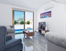 Moderne, komfortabel villa "ATLEV28". Husutstyr: airconditioning, vaske maskin (privat bruk). Tillgang & Parkering privat parkering. Kjøreavstand til huset. Situasjon: i sentrum Avtalevilkar Ayia Triada, på stranden av Protaras. Utsikt from leilighet of hagen. Området rundt huset: grounds (privat bruk), svømmebasseng (privat bruk, lengde 7 m x bredde 3 m), utendørs shower (privat bruk). Facilities and distances: supermarked 1 km, restaurant 700 m, sand strand 700 m.Interior
