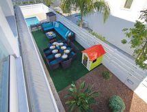 5-rom hus, frakoblet, for 8 mennesker, 140 m2, komfortabelt og moderne møbler. Stue/spise rom med lokal TV, satelit-TV og DVD. Røyking ikke tillatt. Internett (Wireless LAN [WLAN]). Sove rom med 1 dobbel seng. Sove rom med 1 dobbel seng. Sove rom med 1 dobbel seng. Sove rom med 1 dobbel seng. Kjøkken med 4 varme plater, mikro wave, oven, spise bord, oppvaskmaskin, fridge og dyp fryser. Bad-rom, shower og shower/WC. Balkong, terrasse, uteplass, terrasse møbler. Annet utstyr: safe, hårføner, strykejern, vaskemaskin. 1 family bathroom toilet and shower room. 1 en-suite bathroom with bath. All bathrooms have washing basins. Standard Arrival Time: after 16:00 pm. Standard Departure Time: until 11:00 am. En veranda er tilgjengelig. Et basseng er tilgjengelig. Det er en DVD-spiller.- Kjennetegn ved boligen