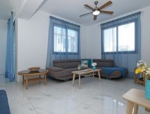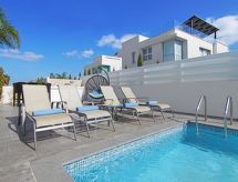 Moderne villa "ATLEV47". Husutstyr: airconditioning, vaske maskin (privat bruk). Tillgang & Parkering privat parkering. Kjøreavstand til huset. Situasjon: i sentrum Avtalevilkar Ayia Triada, på stranden av Protaras. Området rundt huset: svømmebasseng (privat bruk, lengde 3 m x bredde 6 m), utendørs shower (privat bruk). Facilities and distances: supermarked 1 km, restaurant 1 km, sand strand 1.3 km.Interior