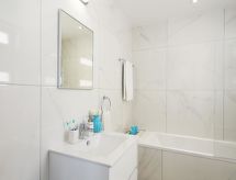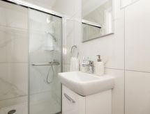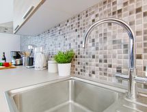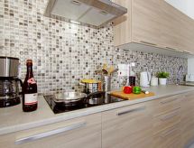4-rom hus, frakoblet, for 6 mennesker, 130 m2, moderne møbler. Stue/spise rom med satelit-TV og DVD. Røyking ikke tillatt. Internett (Wireless LAN [WLAN]). Sove rom med 1 dobbel seng. Sove rom med 1 dobbel seng. Sove rom med 1 dobbel seng. Kjøkken-/stue rom med 4 varme plater, mikro wave, oven, spise bord, oppvaskmaskin, fridge og dyp fryser. Bad/WC, shower/WC og separate WC. Balkong, terrasse, uteplass, terrasse møbler. Annet utstyr: safe, hårføner, strykejern. in total are: 1 WC, 1 family bathroom with bath tub and 1 en-suite bathroom with shower cabin. Det er en terrasse. Huset er også utstyrt med veranda. En DVD-spiller er tilgjengelig. En mikrobølgeovn er også tilgjengelig.- Kjennetegn ved boligen