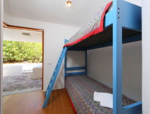 4 rom hus 120 m2. Stor stue/spisestue, takhøyde 2- med, satelit-TV. Utgang til terrassen. 1 dobblet rom med, dusj/bidèt/WC. Utgang til terrassen. 1 rom med, 1 x 2 køysenger. Utgang til hagen. 1 rom med 1 seng og 1 dobbeltseng. Utgang til hagen. Åpent kjøkken (4 kokeplater, stekeovn, oppvaskmaskin, mikrobølgeovn, frys, elektrisk kaffemaskin). Utgang til terrassen. Dusj/bidé/WC. Parkett. Stor terrasse delvis dekt. Terrassemøbler, grill, liggestoler (2). Fasiliteter: vaskemaskin, hårføner. Internett (trådløs LAN [WLAN], gratis). Kjæledyr / hund tillatt 1 kjæledyr / hund tillatt. IUN:Q2681 Passer til grill. Den har en baby seng.- fasiliteter