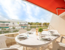 Residens "Aurore", med 3 etasjer. I området La Motte du Couchant, 2 km fra sentrum, 500 m fra sjøen, 450 m fra stranden. I anlegget: heis. Kjøpesenter, restaurant 100 m, togstasjon "Montpellier" 25 km, sandstrand 250 m, svømmehall 3.5 km, termalbad "Thalasso Spa" 4 km. Sporthavn 1 km, golfbane(18 hull) 4 km, seileskole 1 km, tennis 3.5 km, rideskole 1.5 km. Attraksjoner i nærheten: Le Seaquarium du Grau Du Roi 10 km, Les Remparts d'Aigues Mortes 12 km, Les Saintes Maries de la Mer 40 km. Vennligst merk: flyplass i nærheten 20 km av hbrukt. Det er flere lignende leiligheter i samme hus.Interior