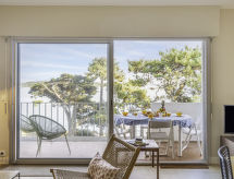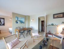"La Baie de Beaumer", 2 rom leilighet 61 m2 i 4th etasje. Romlig, komfortabelt møbler: stue/spisestue med, TV (flatskjerms TV). Utgang til terrassen. Stor sovealkove med, 1 dobbeltseng (1 x 160 cm, lengde 190 cm). 1 rom med, 1 x 2 køysenger (90 cm, lengde 190 cm). Kjøkken (miniovn, oppvaskmaskin, 3 keramiske kokeplater, brødrister, vannkoker, mikrobølgeovn, elektrisk kaffemaskin, Internet(Nespresso), ekstra). Bad, sep. WC. Terrasse 5 m2, østvendt beliggenhet. Terrassemøbler, liggestoler (2). Vakker utsikt av havet. Fasiliteter: vaskemaskin, hårføner. Internett (trådløs LAN [WLAN], ekstra). Parkeringsplass plass nr Réservé apt 59. Vennligst merk: røykvarsler. Tilbud fra en privatperson i henhold til art. 155, IV av CGI. Residence. Et badekar er tilgjengelig. Ferieboligen har en passasjerheis. Dessuten er de bortskjemt med en klar utsikt over havet. Hvis været ikke spiller, er det også en TV.- Kjennetegn ved boligen