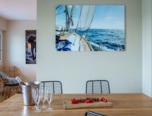 Residens "Baie de Beaumer". I et boligområde, 50 m fra sjøen, 50 m fra stranden, direkte tilgang til stranden. I hbrukt: heis. Parkering. Butikk, supermarked, restaurant, café 850 m, sandstrand "Beaumer" 20 m. Sporthavn 3.5 km, golfbane(18 hull) 15 km, seileskole 1 km. Attraksjoner i nærheten: Alignements dolmens et menhirs, Presqu'île de Quiberon 15 km, Vannes 30 km, Lorient 50 km. Seiling er en imponerende måte å oppleve naturen på. Med hjelp av vindens kraft er en spesielt klimavennlig måte å gjøre en tur og mulig med oss. Hvis du er ute etter lykken på denne jorden på baksiden av hestene, er du på rett sted her. Kjør på de mange idylliske ridestiene på lokale gårder.Interior