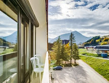 2 rom leilighet 30 m2 i 3rd etasje, beliggenhet mot sør. Enkelt og komfortabelt møbler: stue/spisestue med, 1 uttrekkbar seng (2 pers. 2 x 80 cm, lengde 190 cm), TV (flatskjerms TV), radio og motoriserte persienner. Utgang til balkongen, beliggenhet mot sør. 1 litet rom med, 1 dobbeltseng (140 cm, lengde 190 cm). Åpent kjøkken (4 kokeplater, ovn, oppvaskmaskin, brødrister, mikrobølgeovn, elektrisk kaffemaskin, raclettegrill). Dusj/WC. El-oppvarming. Teppe. Balkong, beliggenhet mot sør. Balkongmøbler. Utsikt av skibakkene. Fasiliteter: strykejern, hårføner. Internett (trådløs LAN [WLAN], ekstra). Vennligst merk: røykfri bolig. Røykvarsler. Objekt med heis. Et privat basseng er tilgjengelig. Huset er også utstyrt med et oppvarmet basseng. Hvis været ikke spiller, er det også en TV. Den har en komfyr.- fasiliteter