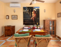 Stor, fin, koselig hus "Balandrina", med 2 etasjer. 12 hus i residensen. 3 km fra sentrum av Dénia, i en roligt, solrikt posisjon, 2 km fra sjøen, 2.4 km fra stranden. Fellesbruk: hage med plen og trær, 1 badebasseng firkantet (14 x 7 m, dybde 110- 200 cm dyp, Sesongåpent: 01.Jan. - 31.Des.) med innbygdetrapper. Barnebasseng. Privat: hage med plen og planter. Hagemøbler, parkering på tomten. Butikk 2.5 km, daglivarehandel 2.3 km, supermarked 2.2 km, restaurant 1.4 km, bar 1.4 km, café 1.4 km, sandstrand "Marineta Casiana" 2.3 km. Sporthavn 2.6 km, marina 2.6 km, surfeskole 2.6 km, seileskole 2.6 km, tennis 5 km. Eieren godtar ikke noen ungdomsgrupper.Interior