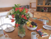 Koselig hus "Barnaby". I en roligt, solrikt posisjon, i det grønne. Fellesbruk: hage med plen. Lekeplass. Privat: hage med plen. Boblebad, sitteplass, hagemøbler, parkering ved hbrukt. Butikk 2 km, daglivarehandel 1 km, restaurant 1 km, bar 3 km, sandstrand "Aberystwyth" 43 km. Golfbane(9 hull) 13 km. Attraksjoner i nærheten: Vale of Rheidol Steam Railway 27 km, Devil's Bridge Waterfalls 28 km, Llandrindod Wells Springs & Lake 30 km, Snowdonia National Park 50 km. Vennligst merk: bil anbefales. Utendørs trening og fotturer i flate områder er en favoritt tidsfordriv her.Interior
