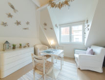 De Haan aan Zee: Liten flermannsbolig "Littoral", med 2 etasjer. I sentrum av De Haan, i en sentrale posisjon, 100 m fra sjøen, 50 m fra stranden, direkte tilgang til stranden. Offentlig parkering på veien. Butikk 1 km, supermarked 1 km, restaurant 10 m, bakeri 300 m, sykkelutleie 750 m.minutters gange til sentrum 2, trikk "De Lijn" 800 m, togstasjon "Oostende" 12 km, sandstrand 30 m, park "La Potiniere" 500 m. Golfbane 1.5 km, surfeskole 1 km, tennis, minigolf 500 m. Attraksjoner i nærheten: Familiepark De Sierk 4 km, Sealife Blankenberge 13 km, Plopsaland De Panne 50 km. Stille og rolig område. Stillhet og god oppførsel. De Haan er det perfekte reisemål for de som ser etter den spesielle seilopplevelsen. Surfing eller ikke surfing er ikke et spørsmål her. Du må bare prøve det. På stedet, muligheten til å gjøre det.Interior