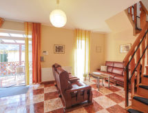 5 rom hus 140 m2. Romlig, komfortabelt møbler: stue. Utgang til terrassen. 2 rom, hvert rom med, 1 dobbeltseng (180 cm, lengde 200 cm), satelit-TV. Åpent kjøkken (4 kokeplater, ovn, frys). Bad/dusj, sep. WC. øverste etasje: inngang. 1 rom med, 1 dobbeltseng (160 cm, lengde 200 cm), dusj/WC og satelit-TV. Utgang til balkongen. 1 rom med, 1 dobbeltseng (140 cm, lengde 200 cm), dusj/WC og satelit-TV. Liten balkong, terrasse. Terrassemøbler, balkongmøbler. Fasiliteter: strykejern, høy barnestol barneseng for barn opp til 3 år. Parkeringsplass (inngjerdet, 3 Biler). Kjæledyr/små hunder tillatt 2 kjæledyr/små hunder tillatt. MA19014822 Den har en balkong. Det er en veranda.- Kjennetegn ved boligen